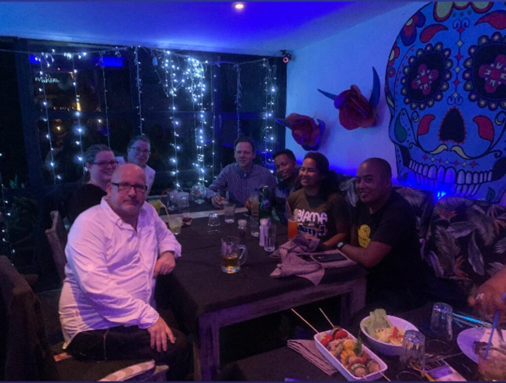 Zurück im Hotel ist es so spät, dass wir auch noch auf die anderen warten können. Lars, Jutta, Markus, Martin, Philipp und Katie sind gerade mit dem Flugzeug aus Paris angekommen. Es gibt ein großes Hallo, es folgen noch ein paar THB, aber die anderen können unseren Getränke-Vorsprung nicht mehr einholen. Unglaublich spät wird es, bevor ich zum Schlafen komme.