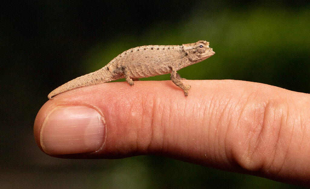 Irgendwo südlich von Joffreville halten die Landcruiser nochmal an. Ich folge José in einen breiten Weg unter Mangobäumen bis zu einem kleinen Waldstück, das eher zerstört erscheint. Es ist der Rand des Forêt d’Ambre, einem eigentlich geschützten Wald. Nur ist vom Schutz nicht allzu viel zu sehen. Frank weiß, dass es hier sehr kleine Erdchamäleons gibt: Brookesia desperata. Er war selbst an der Beschreibung vor zehn Jahren beteiligt. Ich habe die Art noch nie gesehen. Und da ich mit der besten Reisegruppe der Welt unterwegs bin, ist auch für Sonderwünsche Zeit. Im Laub wird eine ganze Weile gewühlt, bemooste Rinde wird extrem genau begutachtet. Wie bei allen Erdchamäleons scheint es, dass man nur den exakten Fundort wissen muss, um die Tiere zu entdecken. Ich habe Glück. Mehrere Brookesia desperata kommen zum Vorschein – wunderschöne, kleine Chamäleons, die sich optisch deutlich von den Erdchamäleons im Montagne d’Ambre unterscheiden. Sie wurden übrigens desperata – verzweifelt – genannt, weil der Wald schon vor zehn Jahre massiv von Abholzung bedroht war. Das hat sich nicht geändert. Ein kleiner Hoffnungsschimmer für die Art ist jedoch, dass sie sich offenbar auch unter Mangobäumen wohl fühlen.