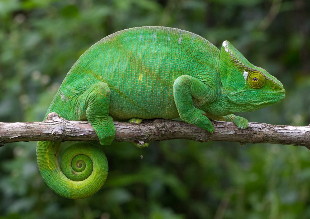 Later we follow the wide path to the left into the bush, only after a few meters I see a small, narrow path. It leads past palms and bushes, through a narrow trickle of water to a hill with coffee trees. Up there are some huts, it is a small village with very nice people. They greet us all with a handshake and “Salama” – and show us their Calumma parsonii parsonii. The gigantic animals are sitting right at the entrance to the village – and the whole village has come to watch us funny Vazaha taking pictures and marveling at these “quite ordinary” chameleons. We find two giant females, who take endless photos of themselves completely undisturbed. You can even carefully take them in your arms, a very impressive feeling. These animals radiate a unique peace and serenity. They seem to stand above things.